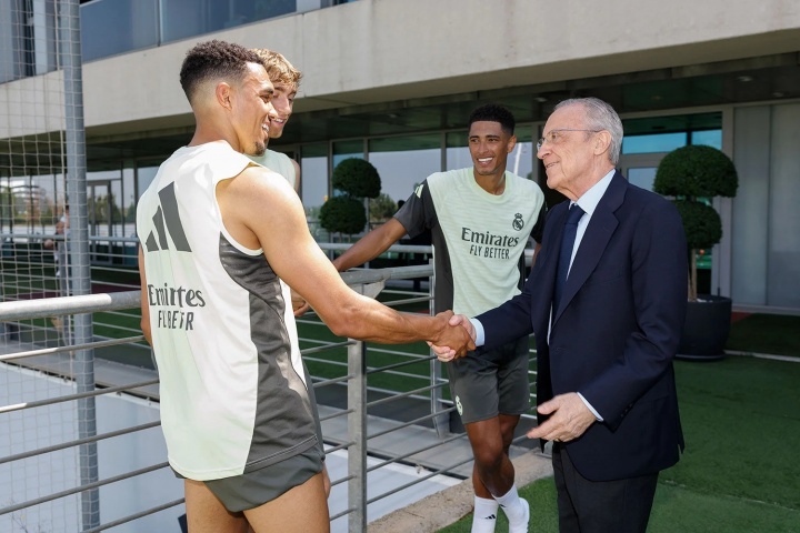 直播吧06月13日讯 今日皇马主席弗洛伦蒂诺来到皇马体育城训练场,看望了哈维-阿隆索以及备战世俱杯的皇马球员。皇马将于北京时间6月19日凌晨3点,迎来本届世俱杯首场比赛,在迈阿密硬石球场对阵利雅得新月。